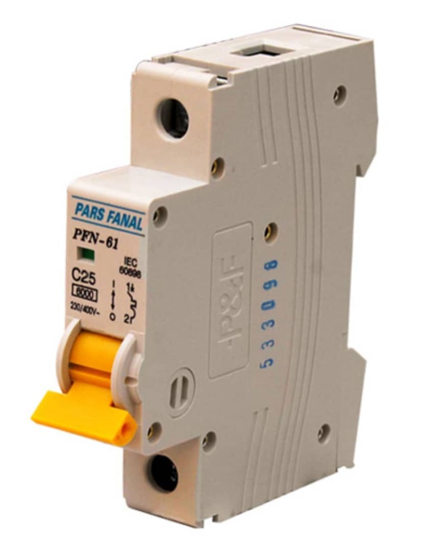 کلید مینیاتوری تک پل (6KA) 25A پارس فانال MODEL : PFN61/25A۱٬۷۰۰٬۰۰۰ 5%