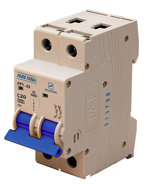 کلید مینیاتوری دو پل (6KA) 20A پارس فانال MODEL : PFN62/20A۳٬۵۷۰٬۰۰۰ 5%
