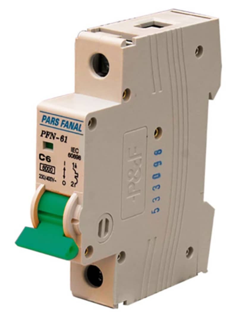 کلید مینیاتوری تک پل (6KA) 6A پارس فانال MODEL : PFN61/6A۱٬۷۰۰٬۰۰۰ 5%