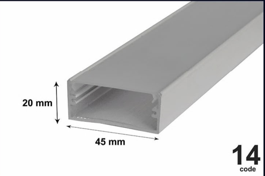 پروفیل لاینر کد 14 روکار عرض45 میلی متر ارتفاع 20 میلی متر