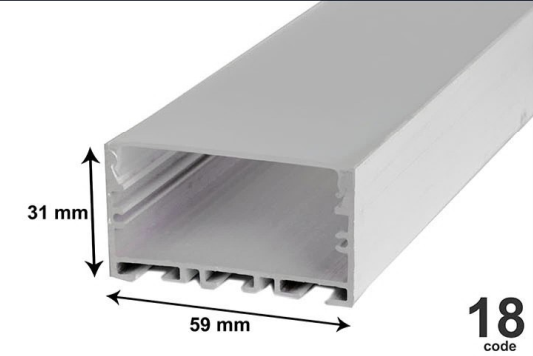 پروفیل لاینر کد 18 روکار عرض59 میلی متر عمق 31 میلی متر
