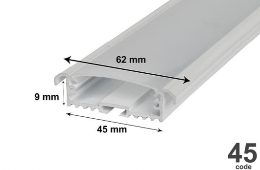 Liner profile code 45 built-in, width 45 mm, depth 9 mm, surface 62 mm