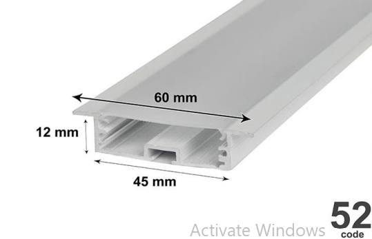 پروفیل لاینر کد 52 توکار عرض 45 میلی متر عمق 12 میلی متر رویه 60 میلی متر
